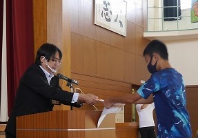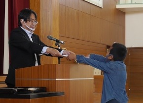 社会を明るくする運動作文コンテストと富山県科学展覧会において、優秀な成績を収めた天瀬っ子の伝達表彰を行いました。夏休みにがんばった作品等の表彰がこの後も届きます。