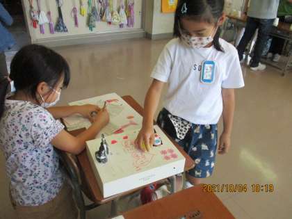 休み時間には、他学年の子供たちがたくさん遊びに来てくれました。2年生は張り切って、おもちゃの遊び方やゲームのルールについて説明をしていました。