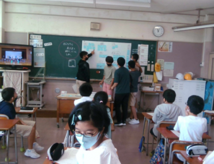 今日の3時間目に総合をしました。前の学活の時間に撮った学習発表会の劇の動画を見て改善点を付箋に書きました。書き終わったら、紙に貼って見ました。それぞれのグループに分かれて改善点を話し合いました。