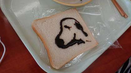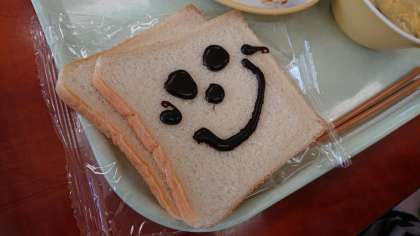 10月7日の給食にチョコクリームが出ました。Sさんがパンに「チョーーーかわいいスヌーピー」を書いていました。ニコちゃんも書いていました。インスタ映えする「ステキな芸術」ですね。食べたらもったない気持ちになりますねえ〜!今日も友達のステキな才能を大発見です。