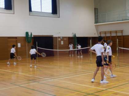 今日のボールゲームクラブはテニスでしたね。小学校でラケット競技を経験する機会はなかなかないので、みんな苦戦していましたね。ときにはホームラン、ときには転がる・・・面白いテニスでした。
