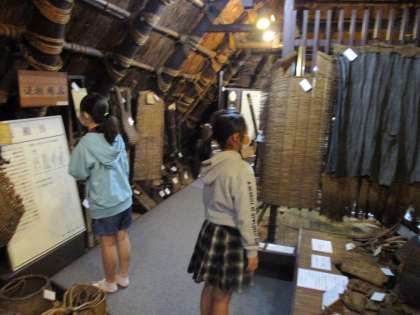 民俗民芸村では、昔の家や道具を見て、昔の暮らしについて学びました。