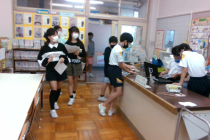 10月6日〜10月19日に読書週間があります。図書室に行って、図書委員が作ったクイズ等をするとビンゴカードにスタンプが押されて、ビンゴになると景品がもらえます。日によって参加する学年が決まっていて、今日、10月14日は6年生の日です。結構人数が来ていました。