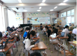 昼休みに、みんながクロムブックをしていました。タイピングや、スクラッチのプログラミングなどをしていました。楽しそうでした。