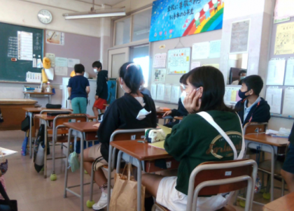 金曜日の大休憩に避難訓練がありました。給食室で火事があり、東階段は使えなくて、赤コースを通ってグラウンドに避難しないといけないという想定で避難訓練をしました。この写真は教室にいて、非常ベルがなった直後の6年生の様子です。このあと、放送を聞いて避難しました。
