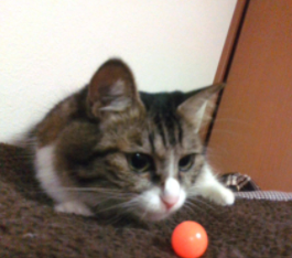 私の家にいる猫です!性別はメスです。今二歳と一ヶ月と五日です。誕生日は9月1日です。よくスーパーボールに反応します!走っていて、たまに壁に頭をぶつけたりするので、それがまたわいいです!これからも元気にすごしてほしいです。大切に育てたいです。