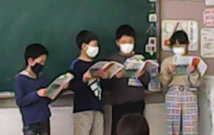 今日は、国語科の学習で、グループの話合いを練習して、みんなの前で発表しました。上手に発表できました。1年生の前で本の読み聞かせができるようにがんばります。