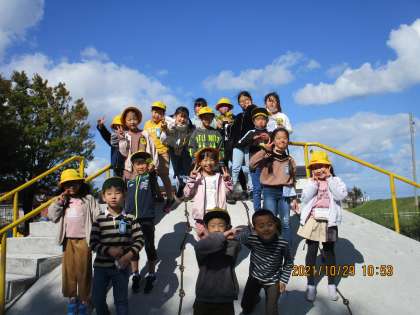 白岩川公園では、銀杏の木や花を観察しながら絵を描いたり、遊具で遊んだりしました。晴天の中、のびのびと楽しそうに体を動かしていました。