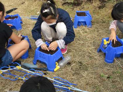 2年HP記しゃ チューリップのきゅうこんをうえたよ!