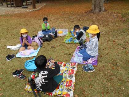 なかよし遠足☆その1(1・2年生) 公開日 2021/11/02 更新日 2021/11/02 1年生 ファミリーパークへ行ってきました。テレビでは、見たことがある動物ですが、生で間近で見ると、迫力があり、格別だったようです! そして、家族が作ってくださったお弁当も、外で食べると最高!だったようです。準備をしてくださり、ありがとうございました。