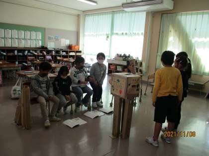 明日、5年生に「お手紙」の音読げき見せます。