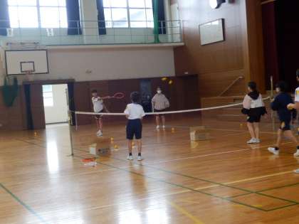 5年生は、今体育の授業でテニスをしています。ラケットを使って、ボールを跳ねさせたり、友達と打ち合ったりしていて楽しいです。今度は、試合にもチャレンジしたいと思いました。