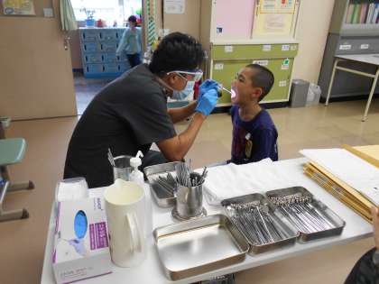 歯科検診後、学校歯科医の先生から、歯みがきのポイントを教えていただいたので紹介します。「ぜひ今晩は、お子さんの前歯の様子を見てください。前歯に汚れがある場合、奥歯にも同様についているので、みがき残しを教えてあげてください。ご家族の間で前歯の様子を見合うこともオススメです。」