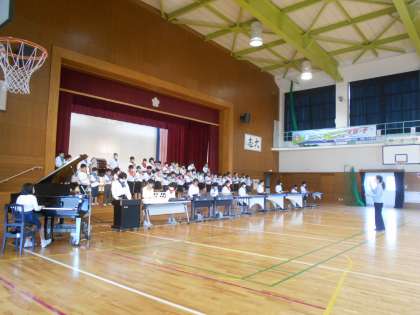 今日、3・4年生は、水橋中学校の音楽の先生から合唱&合奏の指導をしていただきました。アドバイスを受けるたびに、きれいな合唱・合奏になっていきました。撮影本番では、最高の曲になりました。