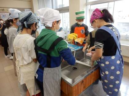 5年生は家庭科でご飯と味噌汁をつくりました。ご飯はおかゆになってしまったけれど、もちもちしていて美味しかったです。味噌汁はいい感じにできたのでよかったです。また作るときは失敗しないように気を付けたいです。