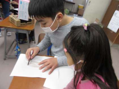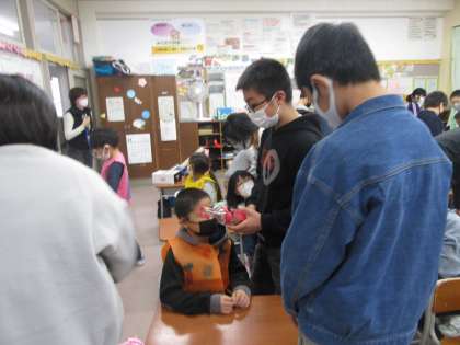 今日は、1年生さんに秋祭りに招待してもらいました。1年生と関わる6年生の表情は、優しくて温かくてとてもすてきでした。