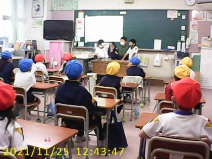 1、2年生に読み聞かせをしました。すると、1、2年生が「とても楽しかったよ」と言ってくれました。それを聞いて、3年生も「うれしい」と言いました。