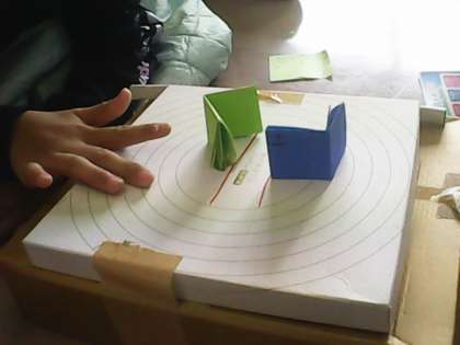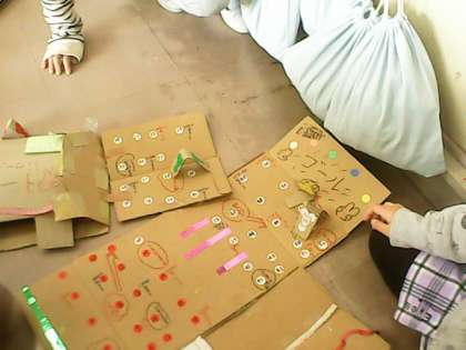 今日、前の図工でつくったわくわくお話ゲームでみんなであそびました。