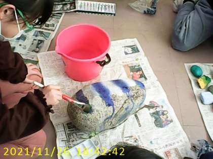 3年生HP記者 「天瀬の森改造計画」 公開日 2021/11/26 更新日 2021/11/26 HP記者「天瀬っ子からの発信」 総合的な学習の時間に、3年生のみんなに協力してもらい、粘土で花を作りました。いろいろな花ができ、とてもあざやかでした。天瀬の森に花の道を作ったら、ぜひ遊びに来てください。 他のグループは、石に色を付けてきれいに仕上げています。この石も天瀬の森に飾ります。石に色を塗るのは楽しいので、みんなもルールを守って色を塗ってみましょう。 K.N
