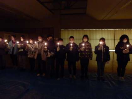 心に残ったキャンドルサービス。4年生のときのクリスマスナイトでもしました。みんなのろうそくに火が灯ると心が温かくなりました。その後は音楽じゃんけんをしました。6年生と一緒にしたので迫力がありました。