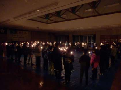 夜はキャンドルサービスです。ろうそくの温かい火に照らされました。