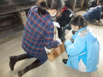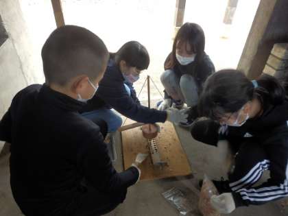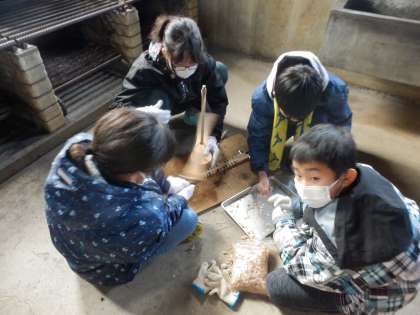 2日目、火おこしです。野外炊飯で使うかまどの火をつけます。
