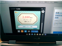 僕は、大休憩や昼休みクロムが使えるときにポップタイピングというのをやっています。これは、文字を打つたびにポップコーンの数が増えていくというタイピングゲームです。今の5年生の最高は、7633粒です。音がとてもいい音で打つときとても気持ちいいです。