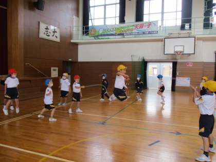 縄にタイミングよく入ることができるように練習しました!コツをつかむと、連続跳びまでできるようになった子供もいました。