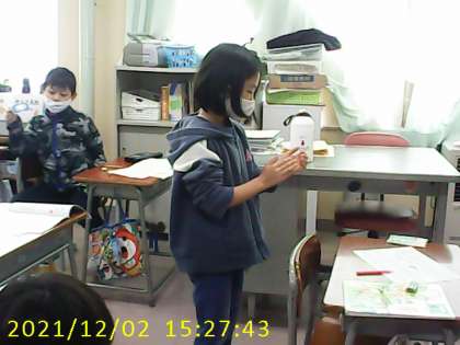 音楽の時間に手をたたいて、リズムをつくりました。一度だけ列ごとにリレーでつなぎました。思っていたよりもよくそろっていて、いい音楽になりました。みなさんも自分だけのリズムをつくってみてください。   K.N