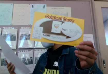 今日の2時間目に外国語をしました。オリジナルカレーの具材を英語で書いて隣のペアと発表しました。カレーの具材を英語で書くのが難しかったです。