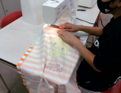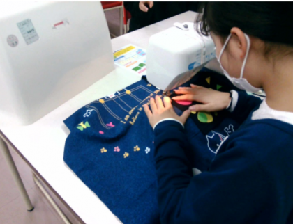 今日の三限目に家庭科をしました。エプロンを作るために、ミシンでぬったり、アイロンをかけたり、刺繍をしたりしました。今日で完成のエプロンを一生懸命作っている姿が見えました。一人一人違う柄のエプロンが完成しました。みんな完成した時、嬉しそうにしていました。S.Yさんが「エプロン作り楽しかった」といっていました。残りの二学期も楽しみたいです。