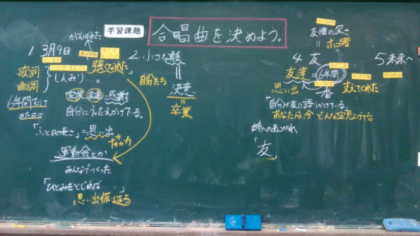 今日の4時間目に卒業式に歌う歌決めをしました。皆、自分の意見を言い合っていました。僕は「友」という歌にネームプレートを貼りました。自分の歌いたい曲にならなくても精一杯歌いたいです。