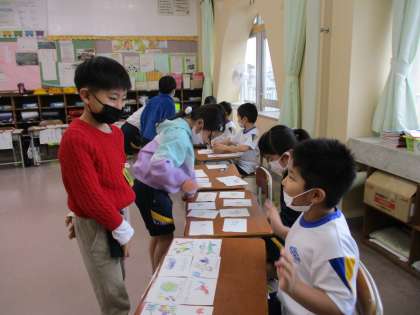 お店屋さんとお客さんになり、やりとりを楽しみました。