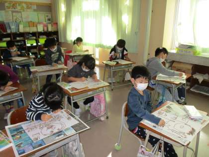 図画工作科の時間に家族の絵を描いています。来週、色塗りをする予定です!