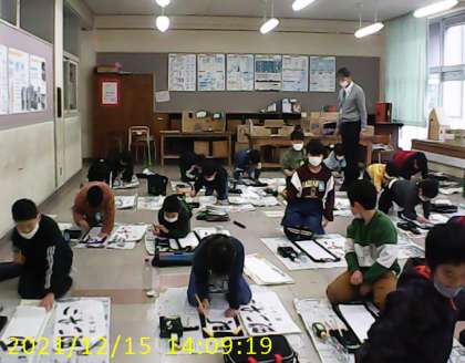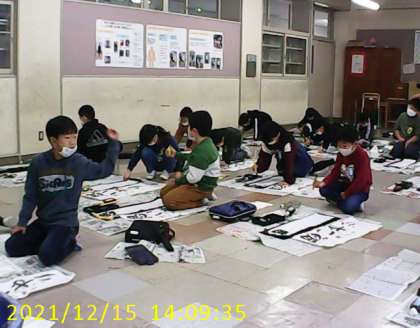 「思いやり」を書いています。みんな真剣に「きれいに書くぞ」という気持ちをもって「思」を書いていました。  H.H