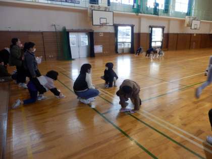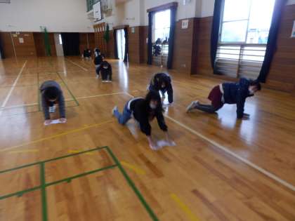 僕たち5・6年生は体育館そうじをしました。体育館に入るまではとても寒かったのですが、水ぶきをするととても温まりました。みんなとても速かったです。