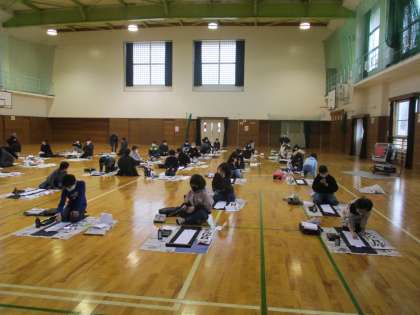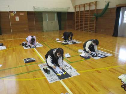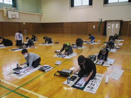 僕たち5・6年生は、体育館で書き初め大会をしました。2枚まで書けます。家で練習するときは、1文字1文字を大切に書きました。1枚目は少しミスをしてしまいました。2枚目は成功したのでよかったです。