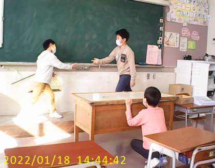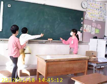 算数の学習の終わりに、かけ算じゃんけんをしました。1から9のハンドサインを互いに出し、その数をかけた答えを先に言うじゃんけんです。
