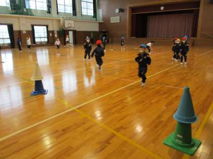 今日の体育では、なわとびとゴム跳び、馬跳びに挑戦しました!