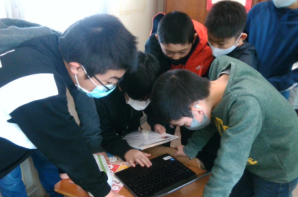 今日の2時間目に英語を勉強しました。小学校生活の思い出を友達と伝え合うために文を書いたりしました。また、ビデオを見て問題を解いたりしました。授業が終わったあとに男子たちがクロムブックで教科書のQRコードを読み取っていました。