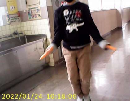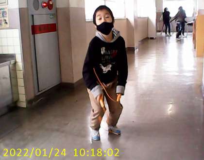 Rさんは、速いリズムでサイドクロス跳びをしていました。観察していると、縄の回転が速くて見えなくなるほどでした。 M.Y