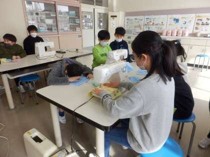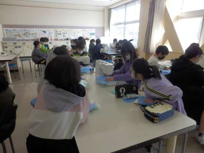僕たちは、5時間目の家庭科でミシンを使いました。使い方は難しかったけれど、挑戦してもっといろんな縫い物を作りたいと思いました。そして、けがのないように安全に学習したいです。