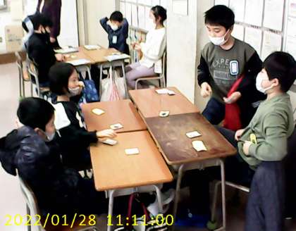 外国語活動の時間に、英語カルタを班でしまいした。取るときに、取り札を英語で言わなければならなかったので、いつものカルタよりちょっと難しかったけれど、すごく楽しかったです。 H.H