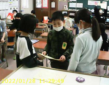 あいさつ・時間パトロール係で、元気よくあいさつをしている人や時間を守って行動している人に賞状を作って渡しました。これからも、あいさつできる3年1組になってほしいです。 N.Y