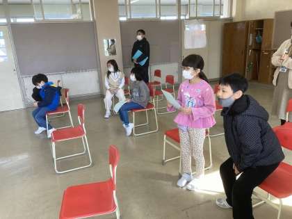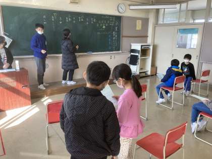 卒業おめでとう集会に向けて、目当てや出し物の話をしました。学級代表として2名が参加し、自分たちの学級の意見を伝えました。学級とは違った雰囲気の中で、しっかりと発言していきました。