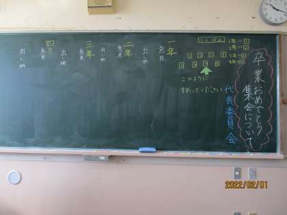 今日の大休憩に代表委員会がありました。6年生に感謝の気持ちを伝えられるように、目当てや出し物を各学年で考えました。卒業おめでとう集会で、しっかりと6年生に感謝の気持ちを伝えたいです。