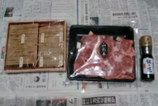 今日は、肉パーティー。高級な肉!美味しそー!!早く食べたい。タレもちょっと高級!