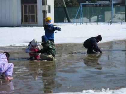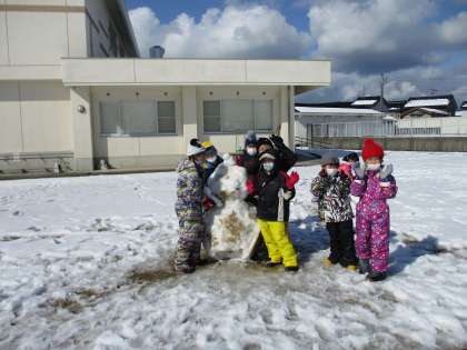 氷を集めたり、雪だるまを作ったりしました!お日様に照らされて、笑顔がきらきらと輝いていました。