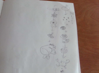 今日は、友達5人と「絵しりとり」をしました。リンゴから始まって、いろいろ出てきました。上手な絵をかく人やおもしろい絵をかく人がいて、楽しかったです。明日もやりたいです。