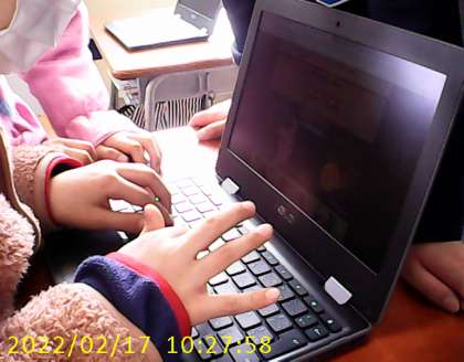 雪が降っているので、休み時間は、タイピングや縄跳びをしています。みんな上手になっています。T.T